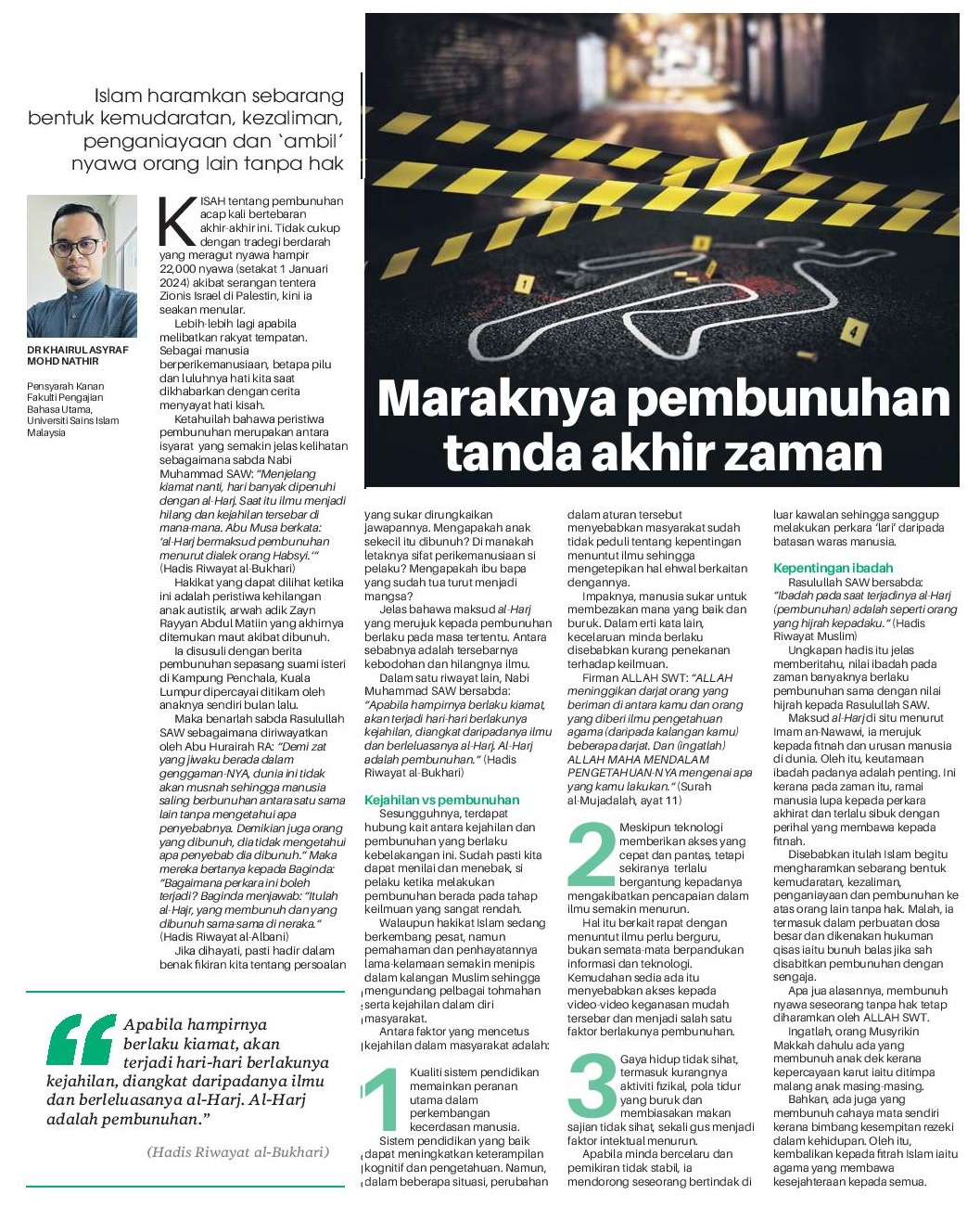 Maraknya pembunuhan tanda akhir zaman