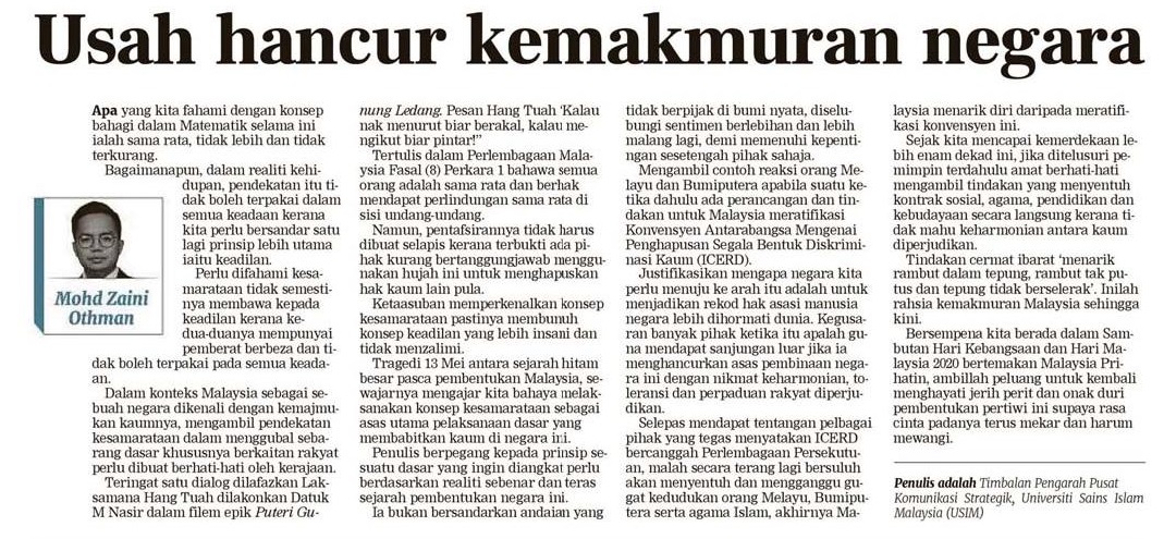 Usah Hancurkan Kemakmuran Negara