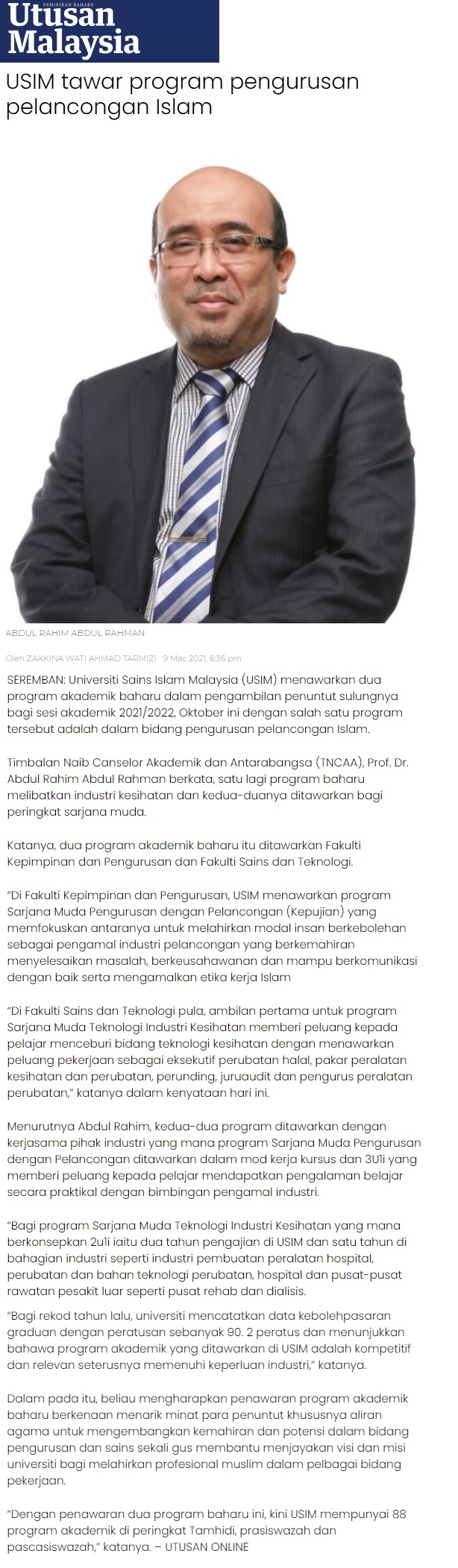 USIM Tawar Program Pengurusan Pelancongan Islam