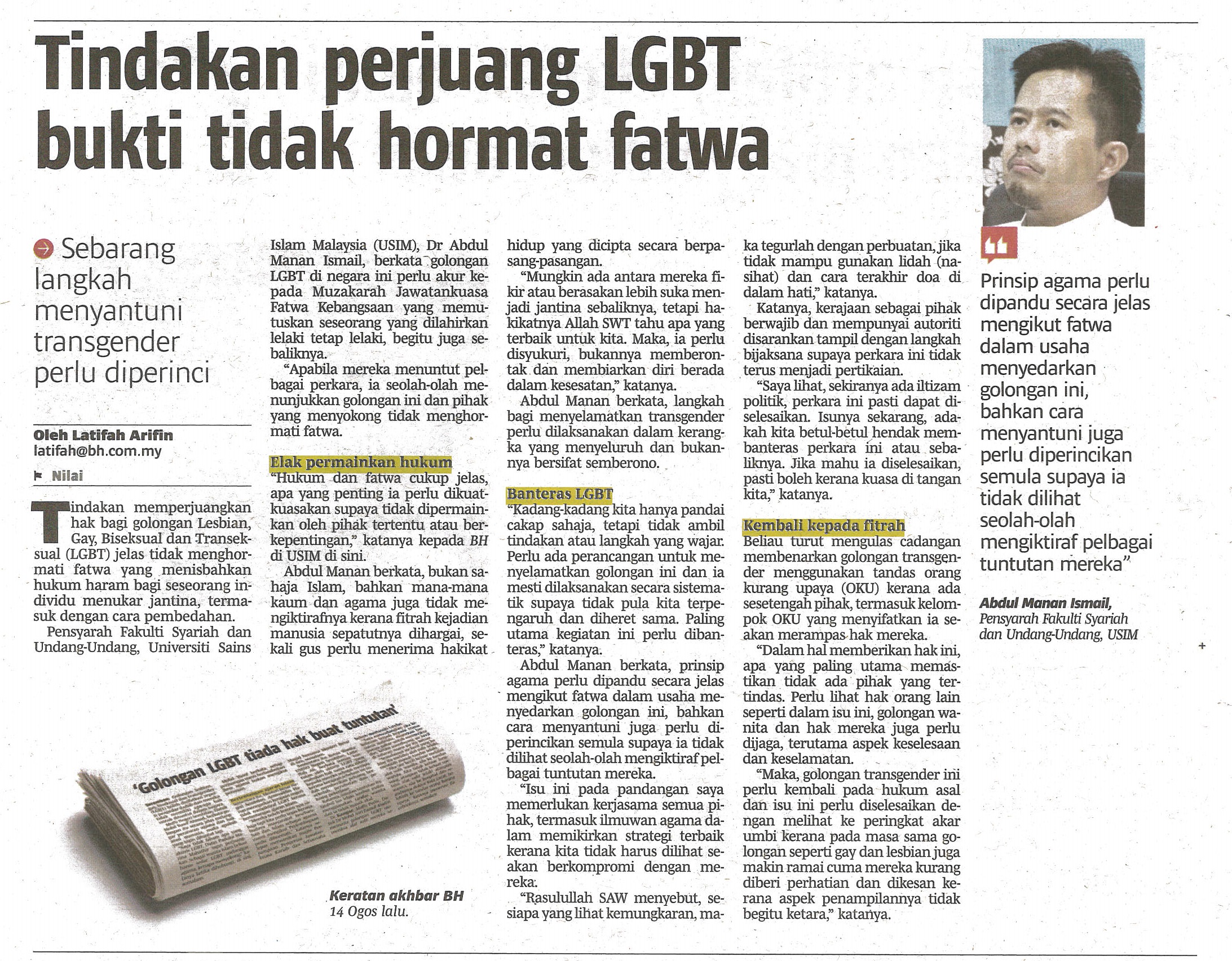BERITA HARIAN 29 OGOS 2018 MS 75 TINDAKAN PERJUANG LGBT BUKTI TIDAK HORMAT FATWA.jpg