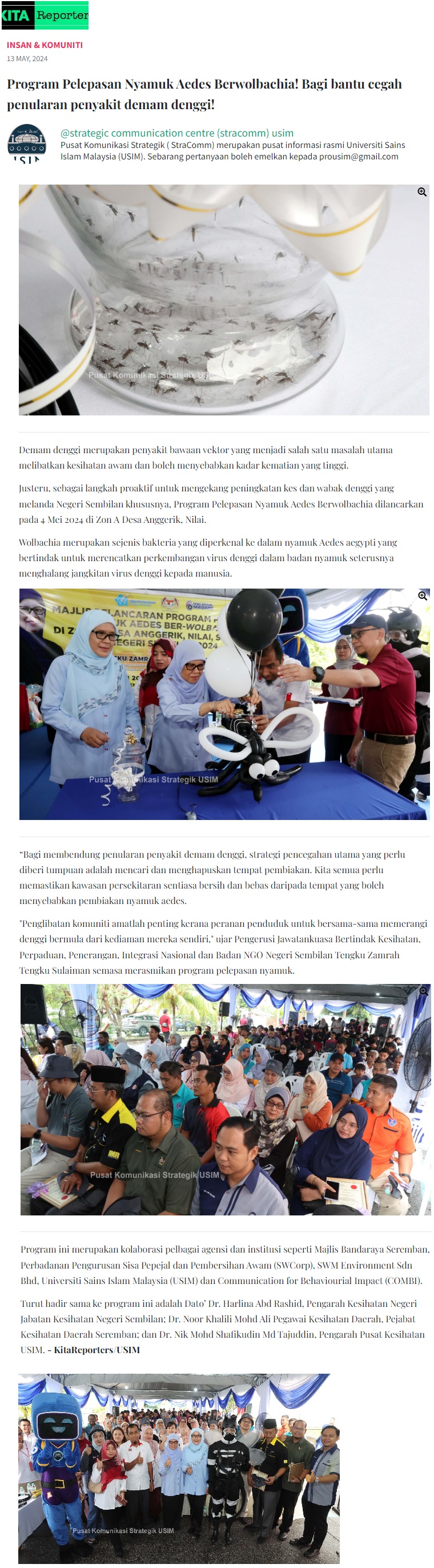 Program pelepasan nyamuk Aedes Berwolbachia! Bagi bantu cegah penularan penyakit demam dengki