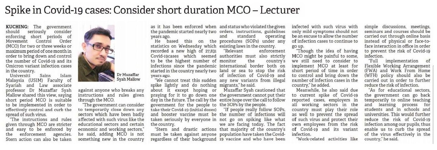 Spike In Covid-19 Cases; Consider Short Duration MCO