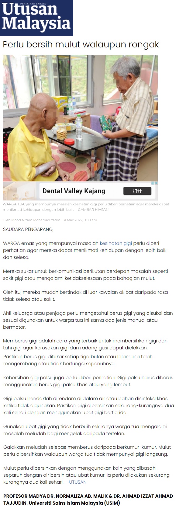 UTUSAN ONLINE 31 MAC 2022 PERLU BERSIH MULUT WALAUPUN RONGAK.jpg
