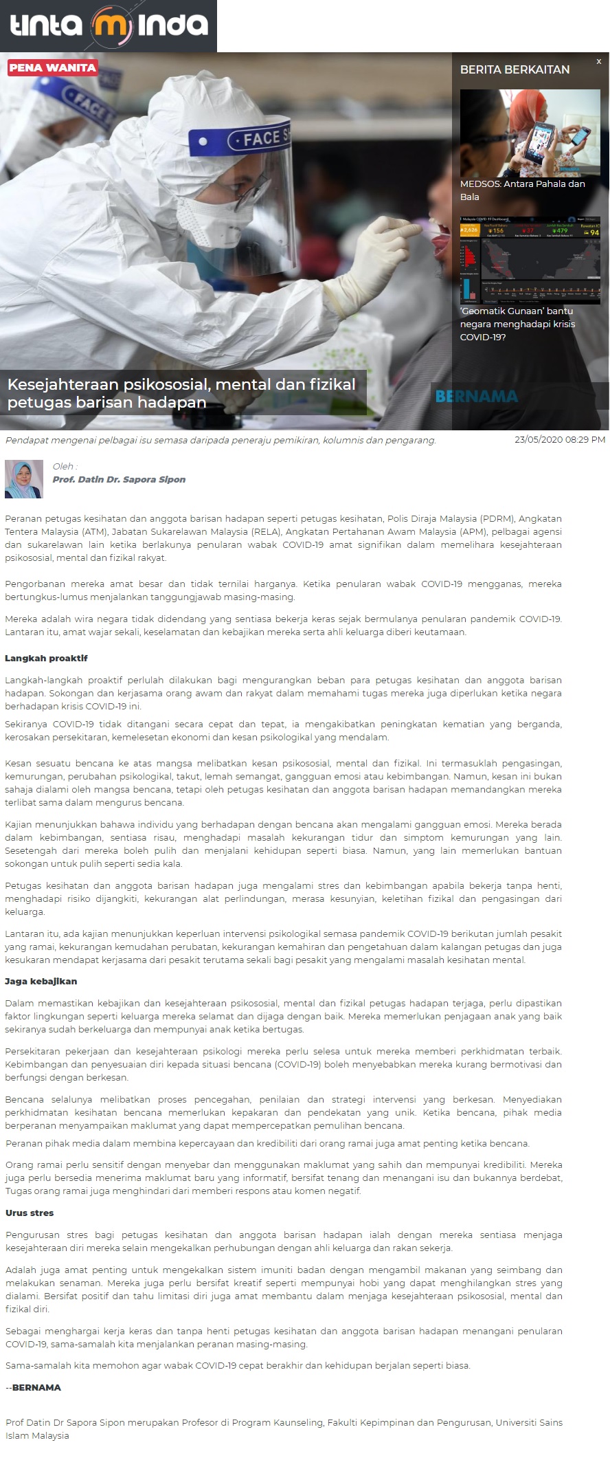 Kesejahteraan Psikososial, Mental Dan Fizikal Petugas Barisan Hadapan