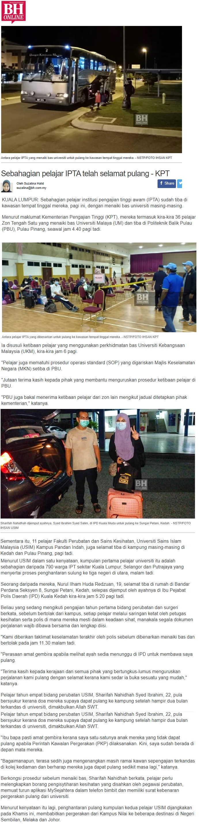 Sebahagian Pelajar IPTA Telah Selamat Pulang