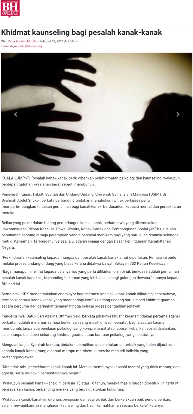 Khidmat Kaunseling Bagi Pesalah Kanak-Kanak