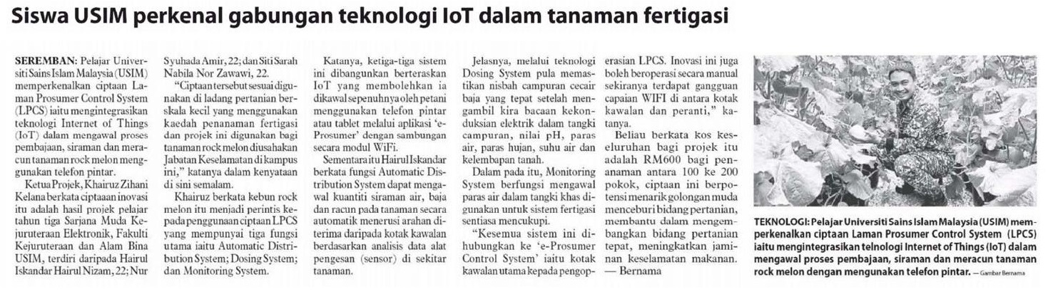 Siswa USIM Perkenal Gabungan Teknologi IOT Dalam Tanaman Fertigasi