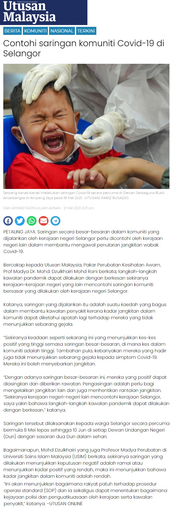 Contohi Saringan Komuniti Covid-19 Selangor