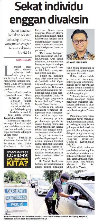 Sekat Individu Enggan Divaksin