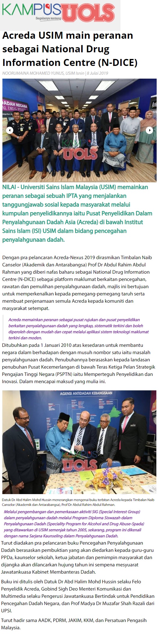 ACREDA USIM Main Peranan Sebagai National Drug Information Centre (N-Dice)