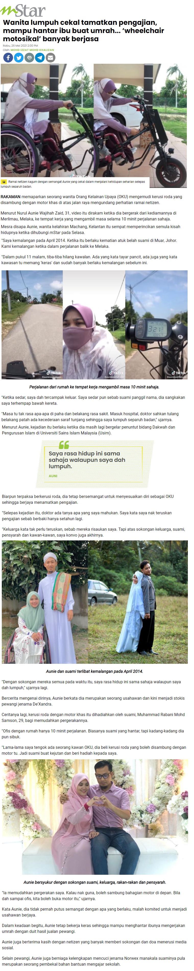 Wanita Lumpuh Cekal Tamatkan Pengajian, Mampu Hantar Ibu Buat Umrah... ‘Wheelchair Motosikal’ Banyak Berjasa