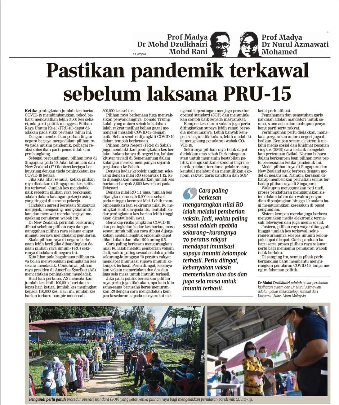 Pastikan Pandemik Terkawal Sebelum Laksana PRU-15
