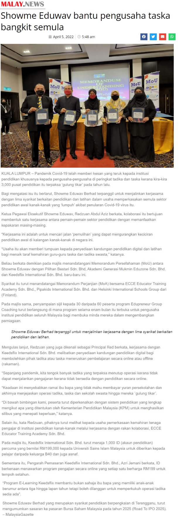 Showmw Eduwav Bantu Pengusaha Taska Bangkit Semula