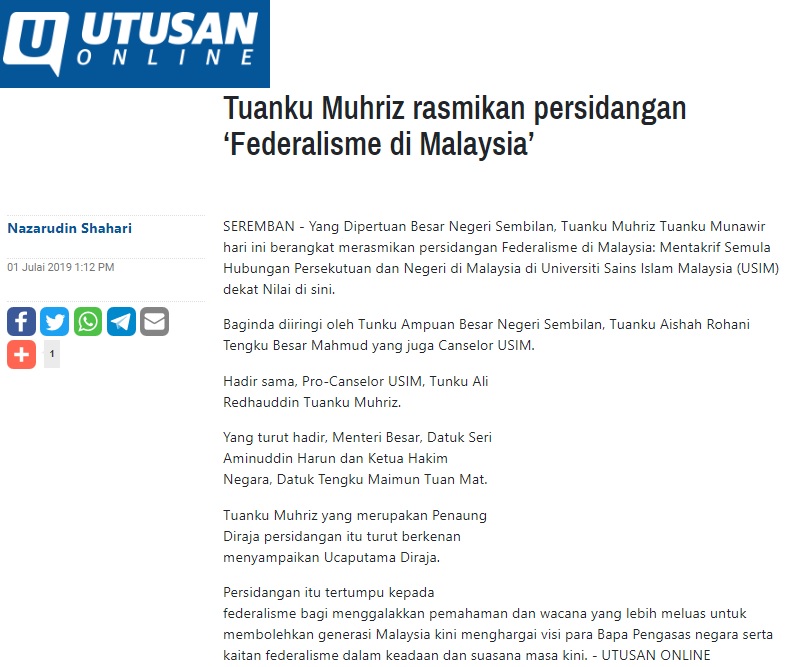 Tuanku Muhriz Rasmikan Persidangan 'Federalisme Di Malaysia'