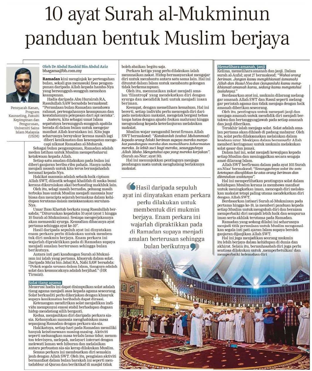 10 ayat surah Al-Mukminun panduan bentuk muslim berjaya
