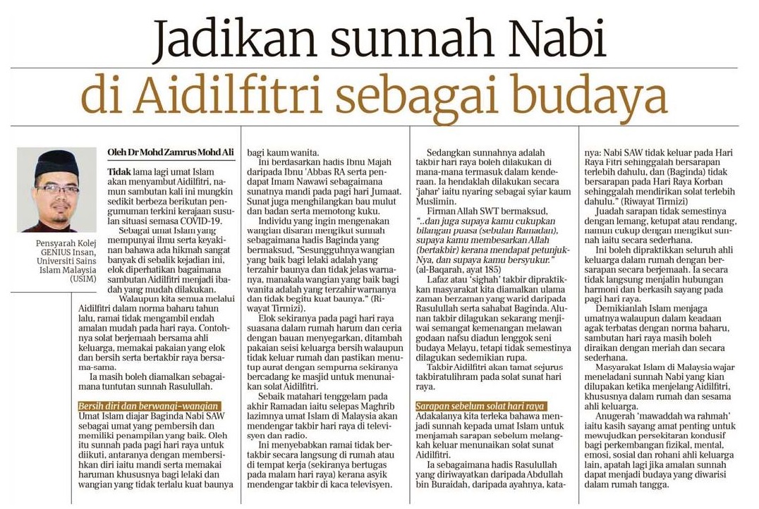 Jadikan Sunnah Nabi Di Aidilfitri Sebagai Budaya