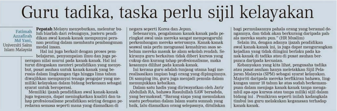Guru Tadika, Taska Perlu Sijil Kelayakan