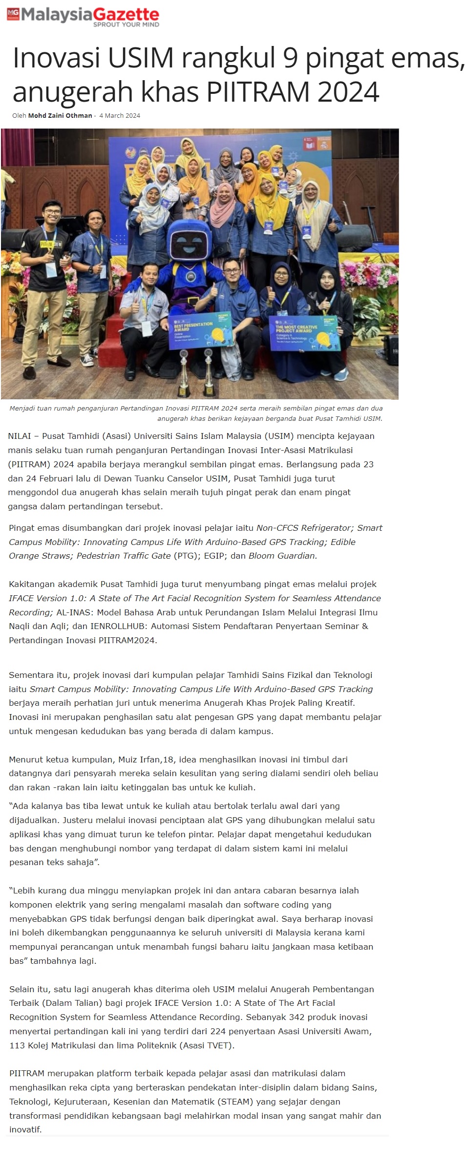 Inovasi USIM rangkul 9 pinggat emas, anugerah khas PIITRAM 2024