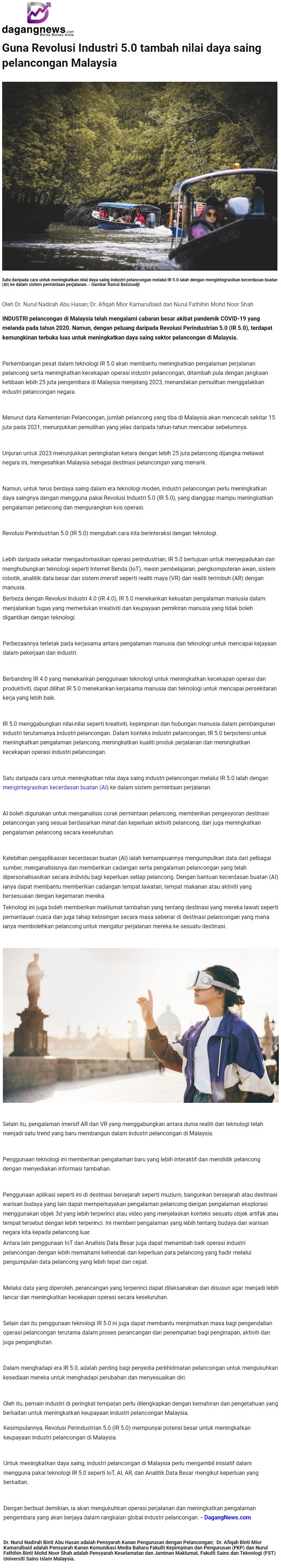 Guna revolusi industri 5.0 tambah nilai daya saing pelancongan Malaysia