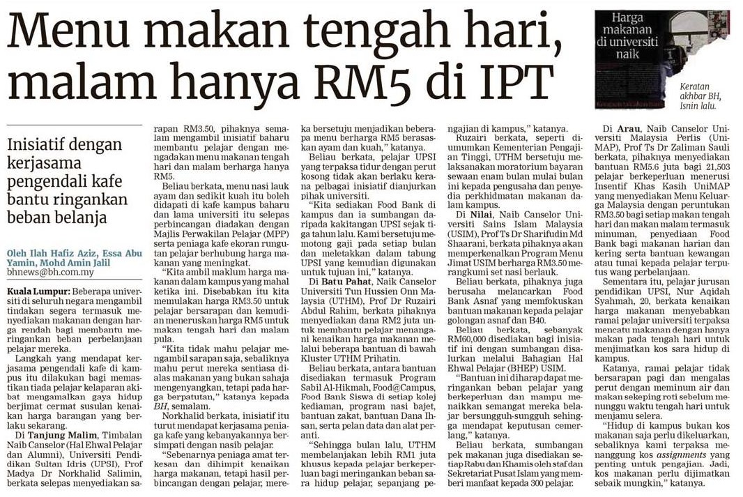 Menu Makan Tengah Hari, Malam Hanya RM5 Di IPT