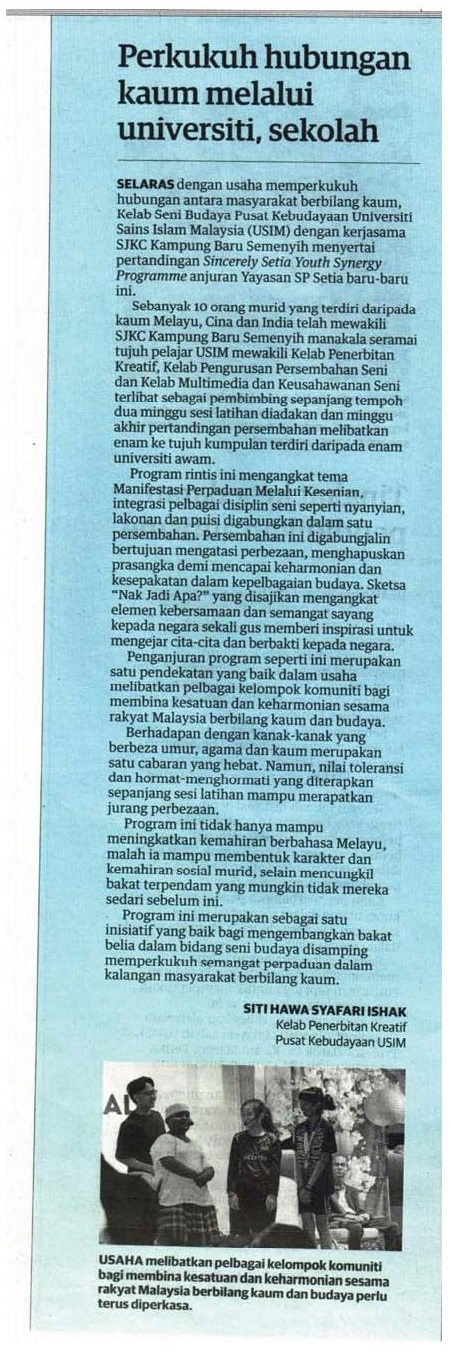 PERKUKUH HUBUNGAN KAUM MELALUI UNIVERSITI, SEKOLAH