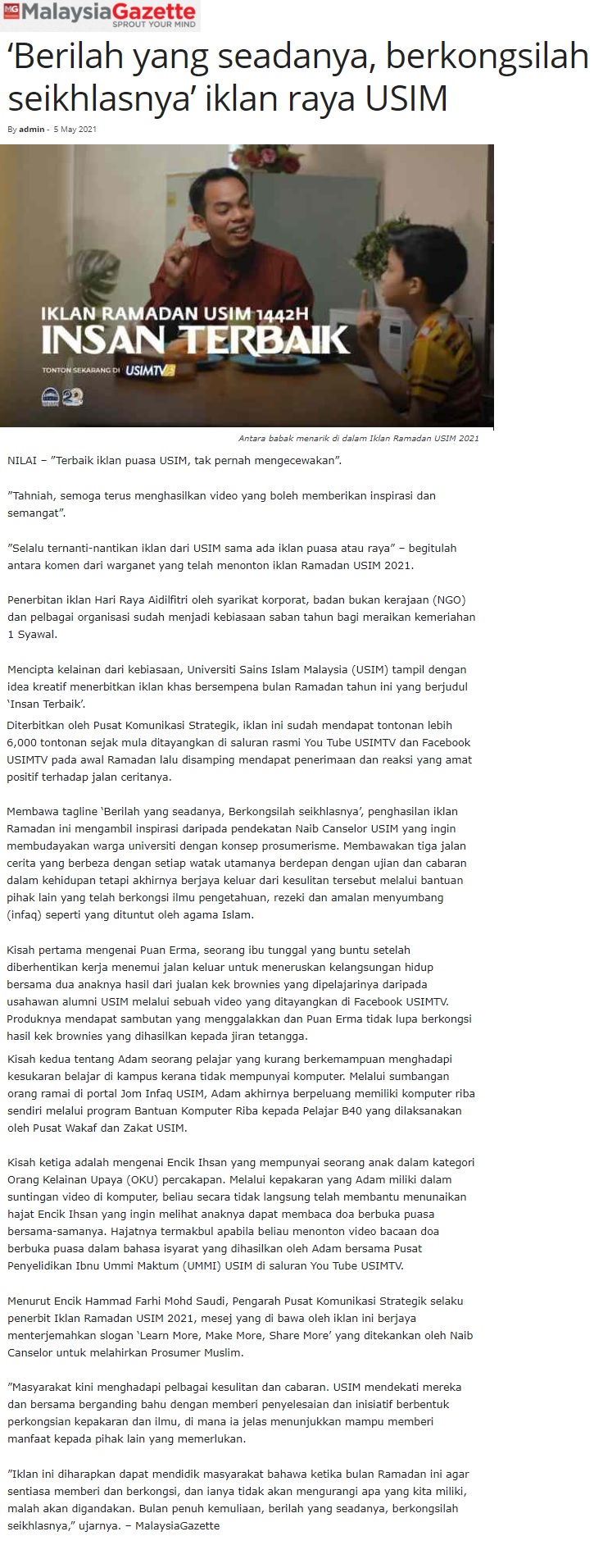 Berilah Yang Seadanya, Berkongsilah Seikhlasnya - Iklan Raya USIM