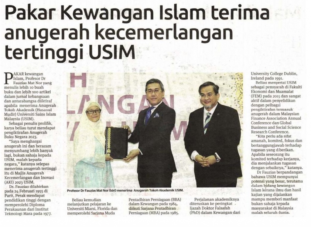 Pakar kewangan Islam terima anugerah kecemerlangan tertinggi USIM