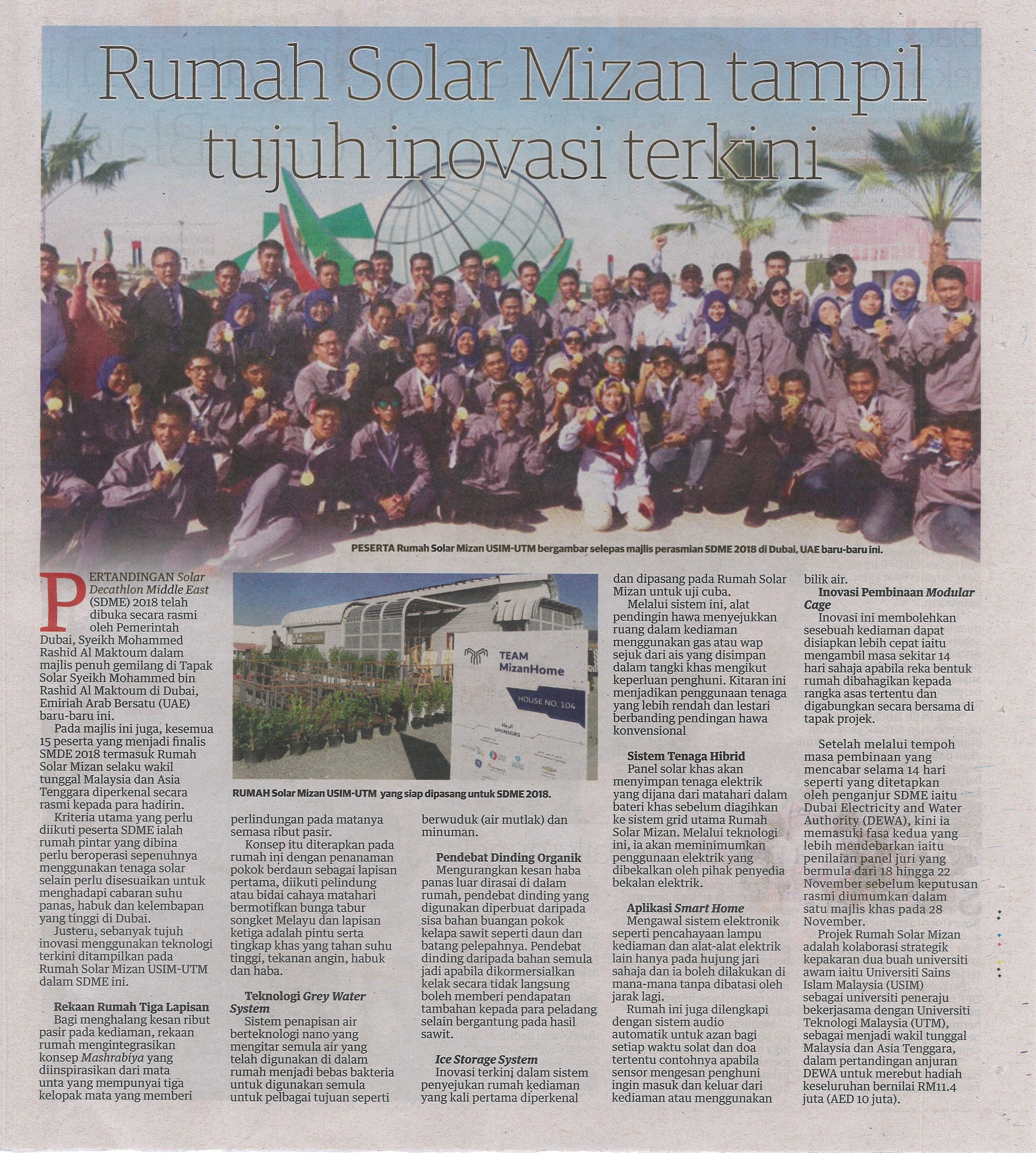 UTUSAN MALAYSIA 22 NOVEMBER 2018 MS 37 RUMAH SOLAR MIZAN TAMPIL TUJUH INOVASI TERKINI.jpg
