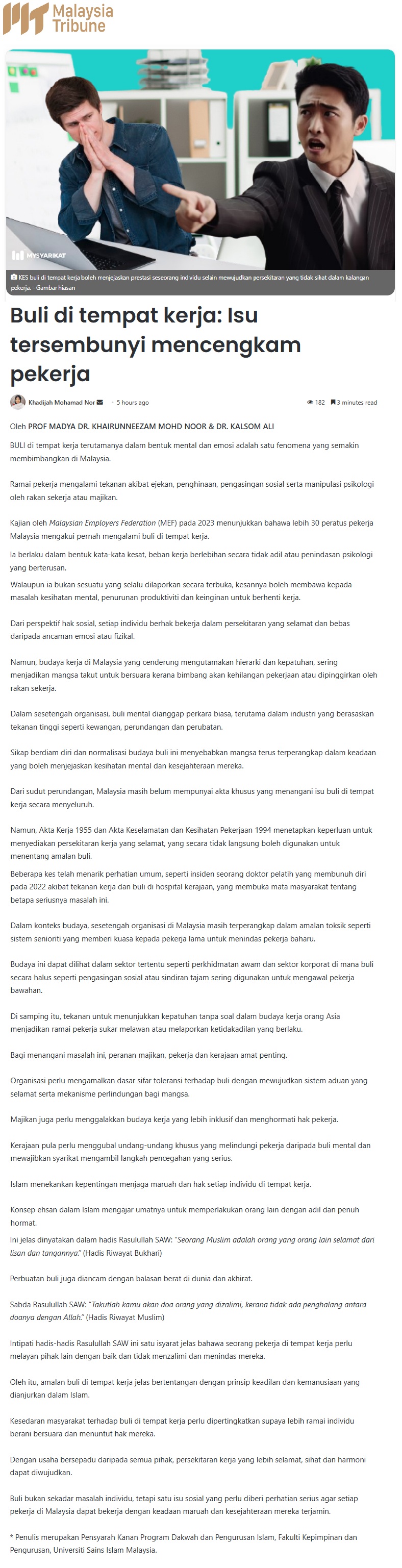 MALAYSIA TRIBUNE 21 MAC 2025 BULI DI TEMPAT KERJA; ISU TERSEMBUNYI MENCENGKAM PEKERJA.jpg