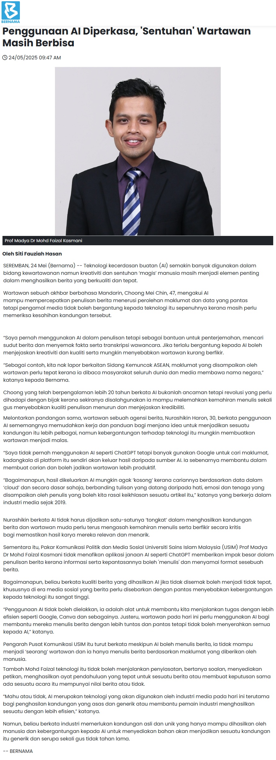 BERNAMA 24 MEI 2025 PENGGUNAAN AI DIPERKASA, SENTUHAN WARTAWAN MASIH BERBISA.jpg