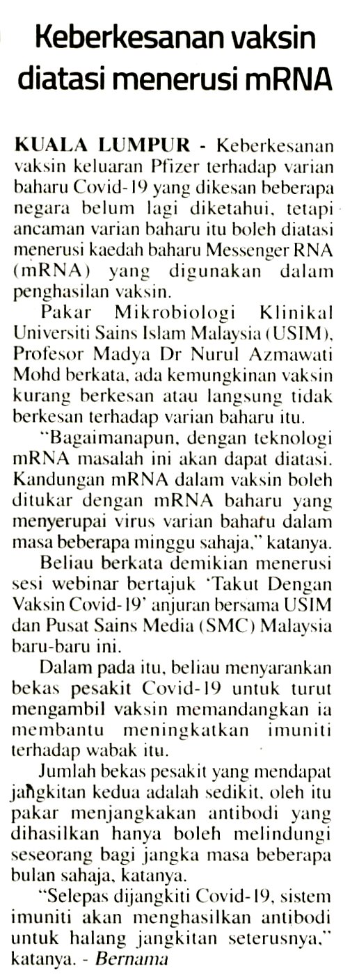 Keberkesanan Vaksin Covid-19 Dapat Diatasi Menerusi MRNA
