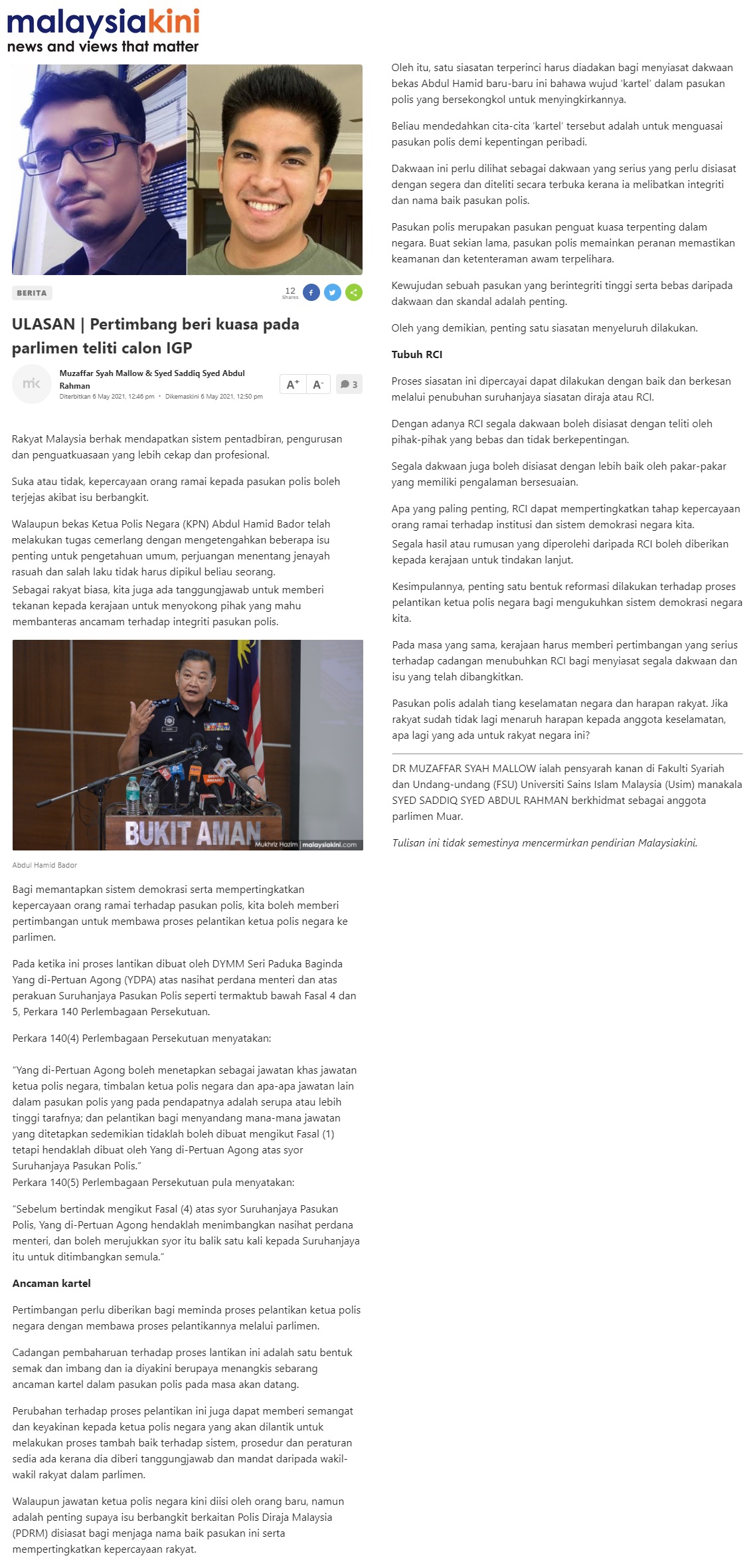 Pertimbang Beri Kuasa Pada Parlimen Teliti Calon IGP