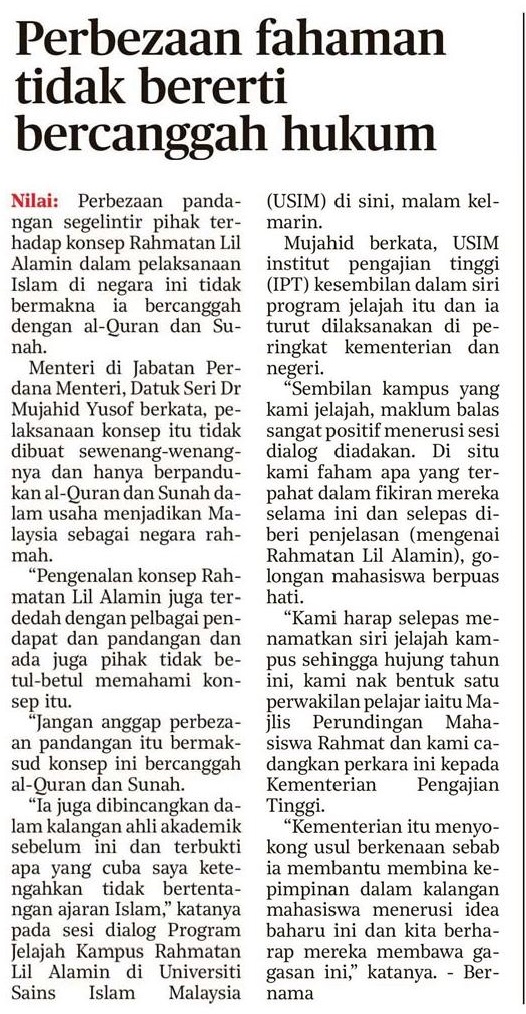 Perbezaan Fahaman Tidak Bererti Bercanggah Hukum