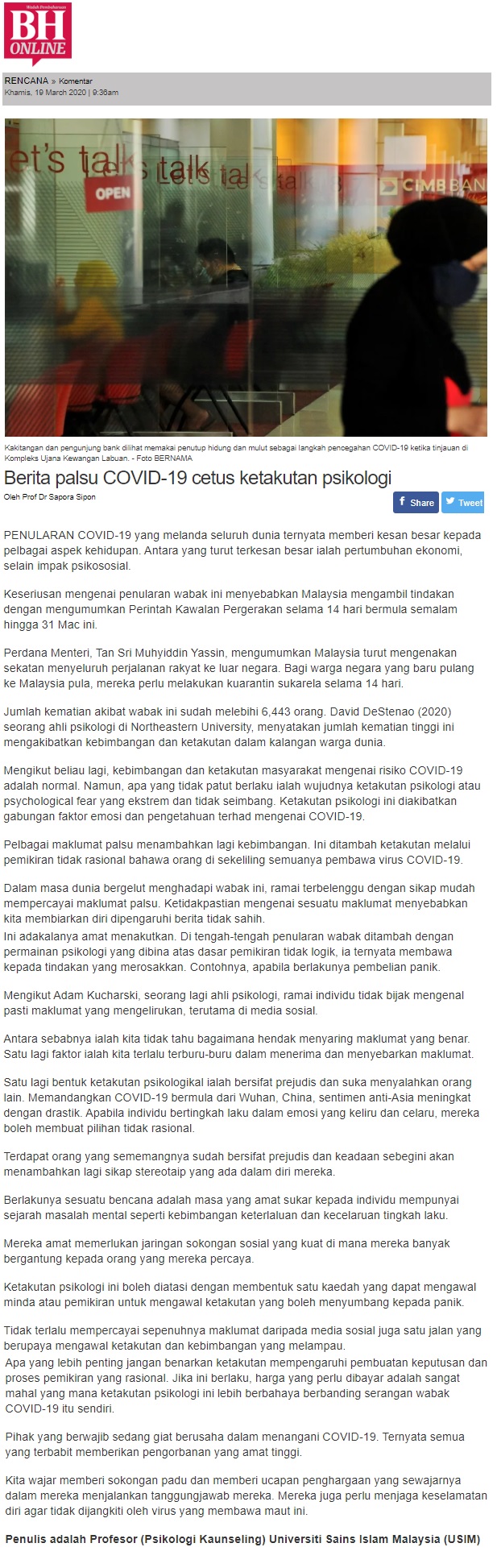 Berita Palsu Covid-19 Cetus Ketakutan Psikologi