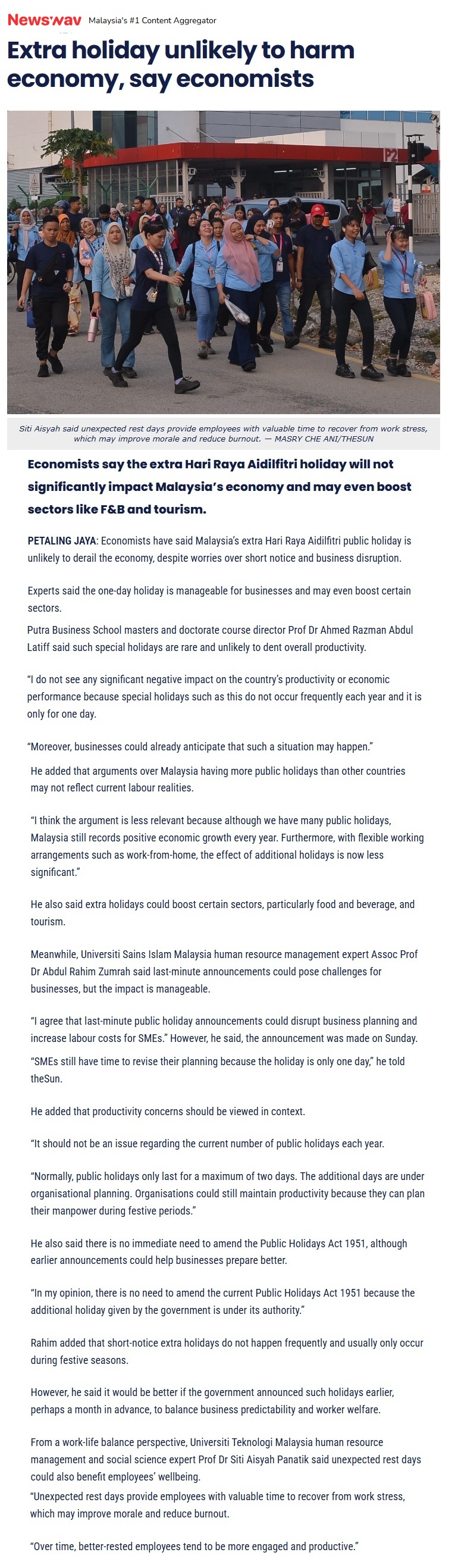 EXTRA HOLIDAY UNLIKELY TO HARM ECONOMY