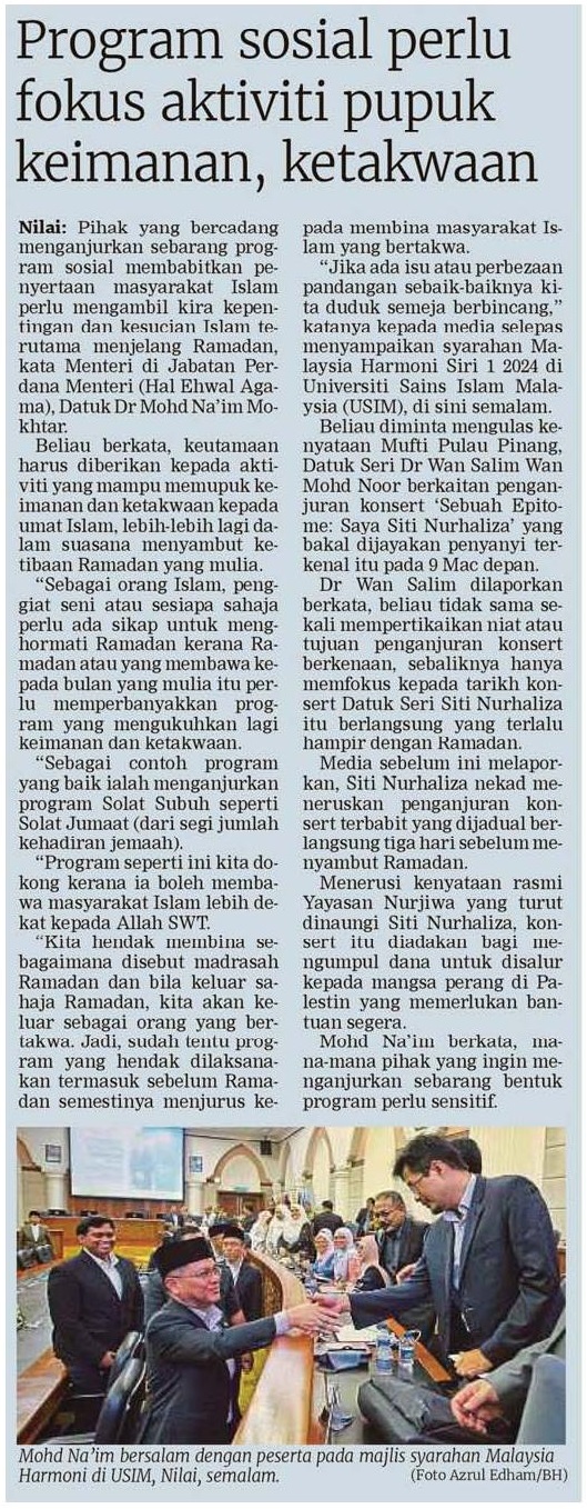 Program sosial perlu fokus aktiviti pupuk keimanan, ketakwaan