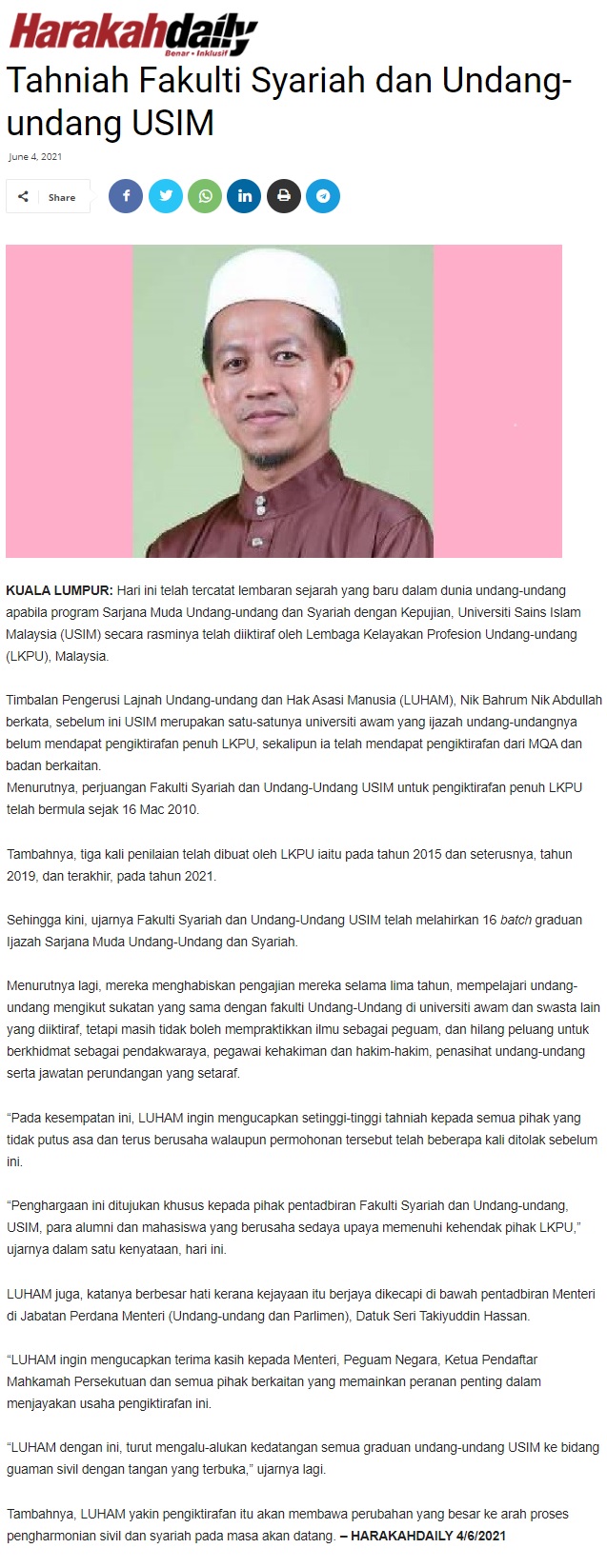 Tahniah Fakulti Syariah Undang-Undang USIM