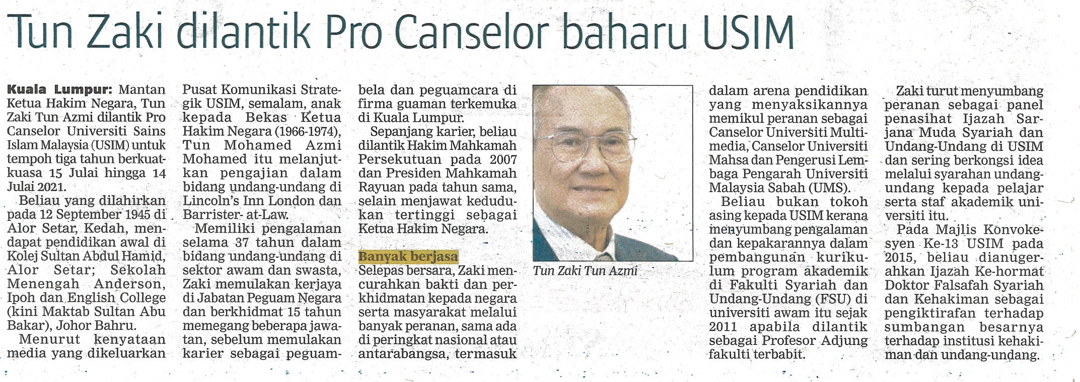 BERITA HARIAN 12 JULAI 2018 MS 65 TUN ZAKI DILANTIK PRO CANSELOR BAHARU USIM.jpg