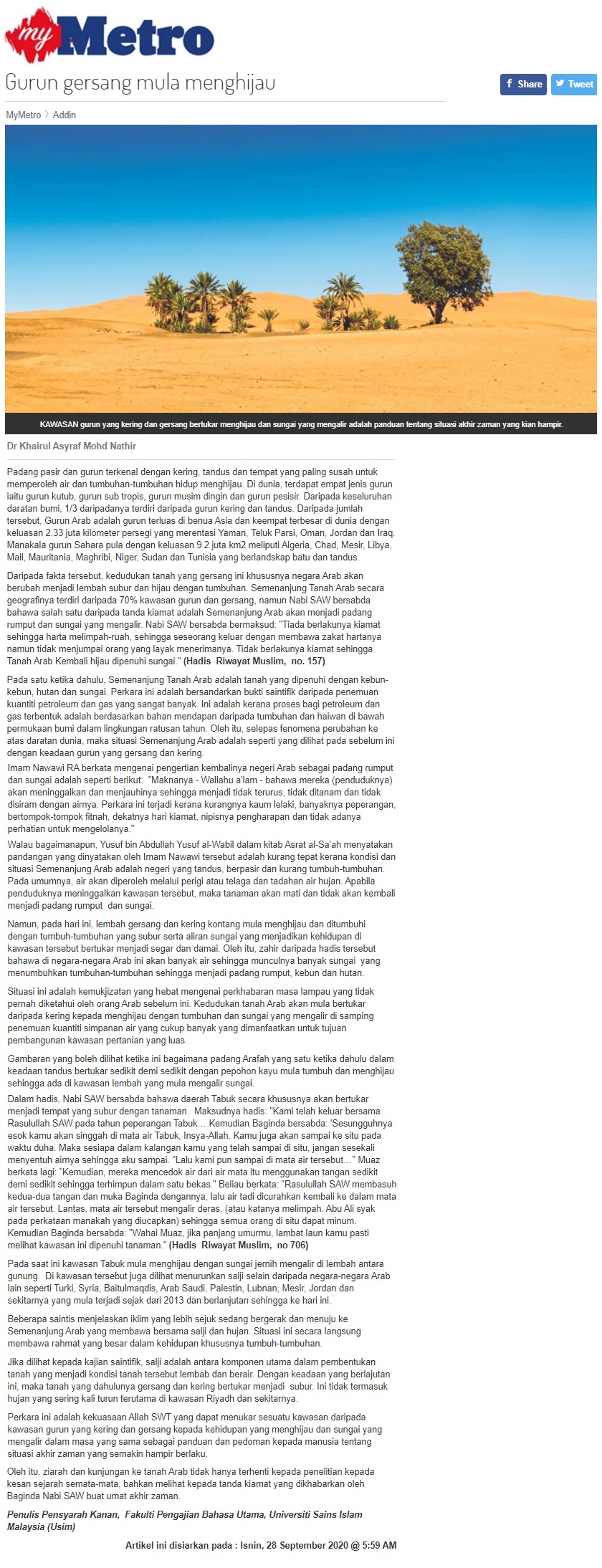 Gurun Gersang Mula Menghijau