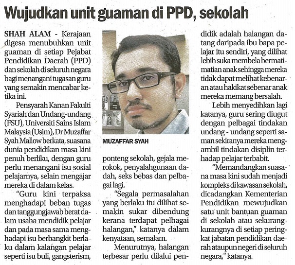 Wujudkan Unit Guaman Di PPD, Sekolah