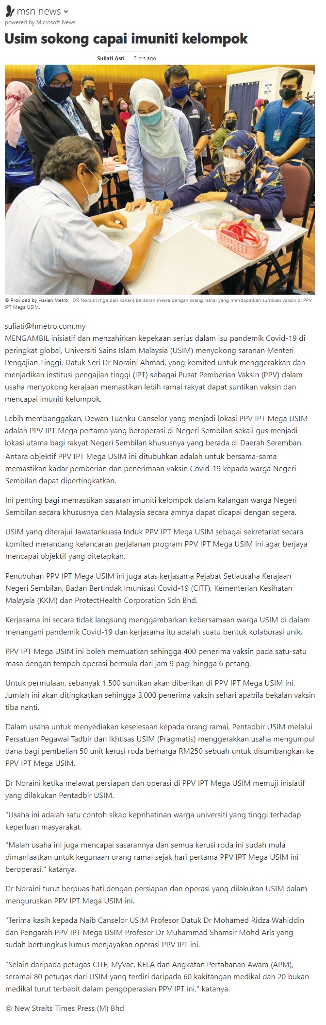 USIM Sokong Capai Imuniti Kelompok