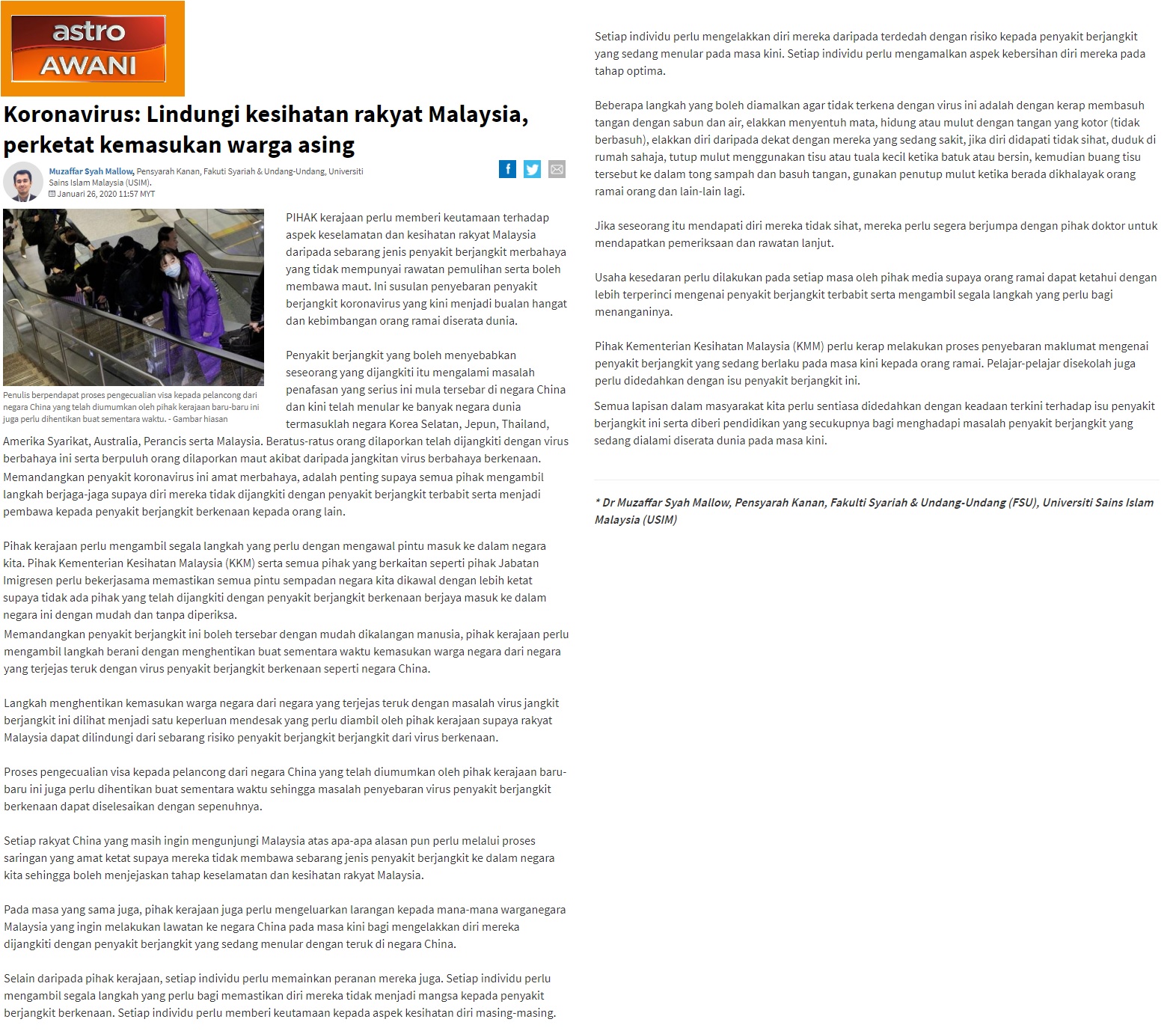 Koronavirus: Lindungi Kesihatan Rakyat Malaysia, Perketat Kemasukan Warga Asing