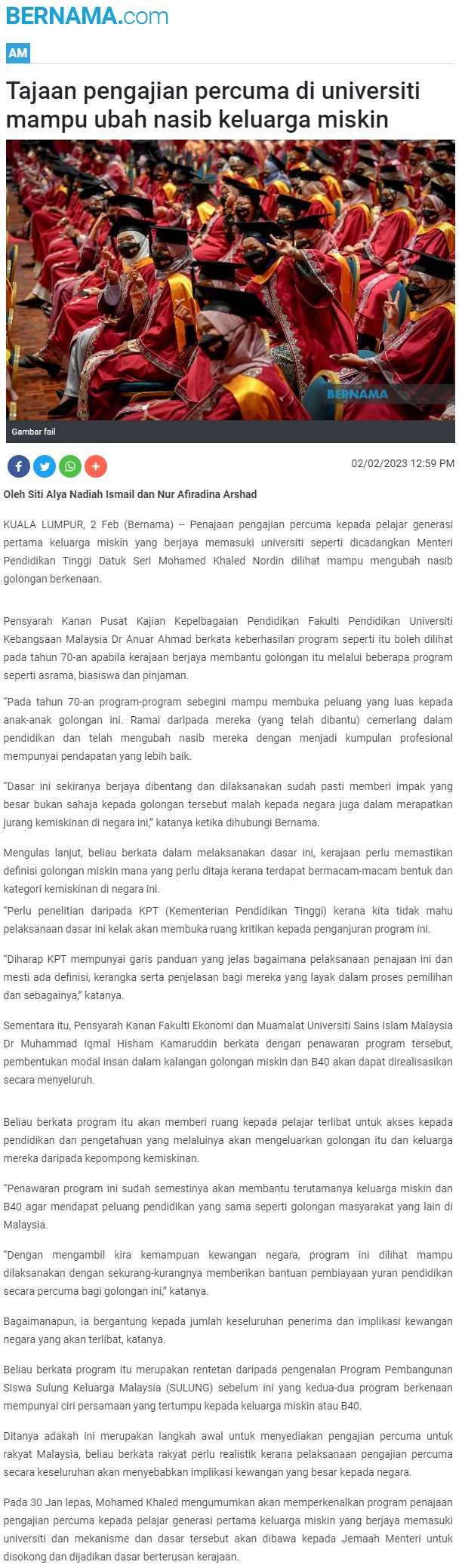 Tajaan pengajian percuma di universiti mampu ubah nasib keluarga miskin