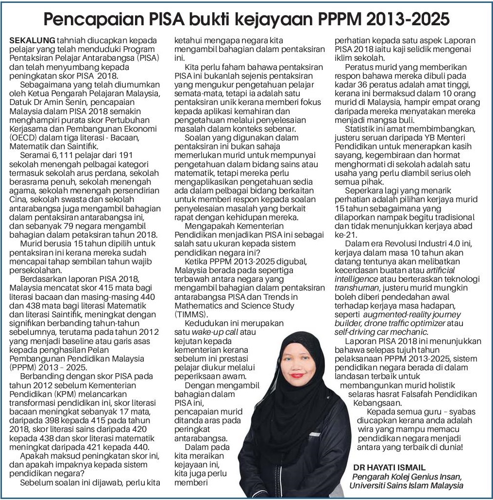Pencapaian Pisa Bukti Kejayaan PPPM 2013-2025