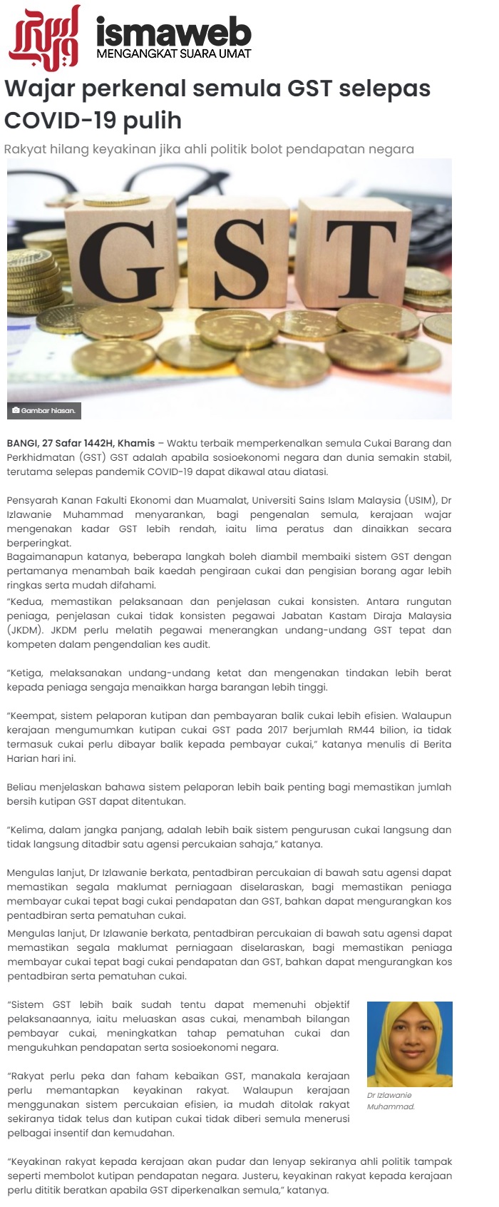 Wajar Perkenal Semula GST Selepas Covid-19 Pulih