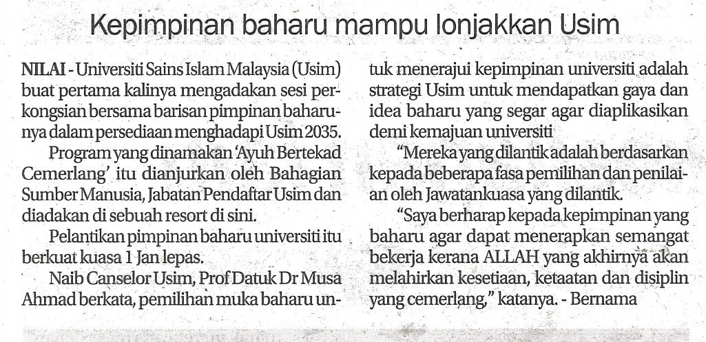 Kepimpinan Baharu Mampu Lonjakkan USIM