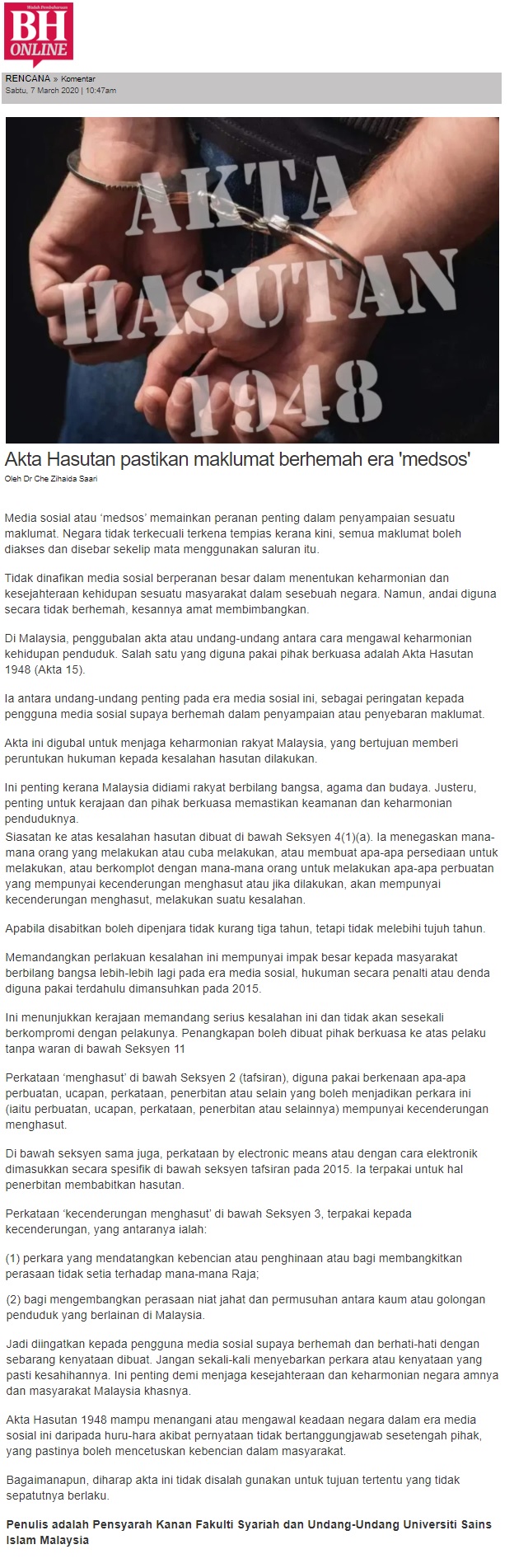 Akta Hasutan Pastikan Maklumat Berhemah Era Medsos