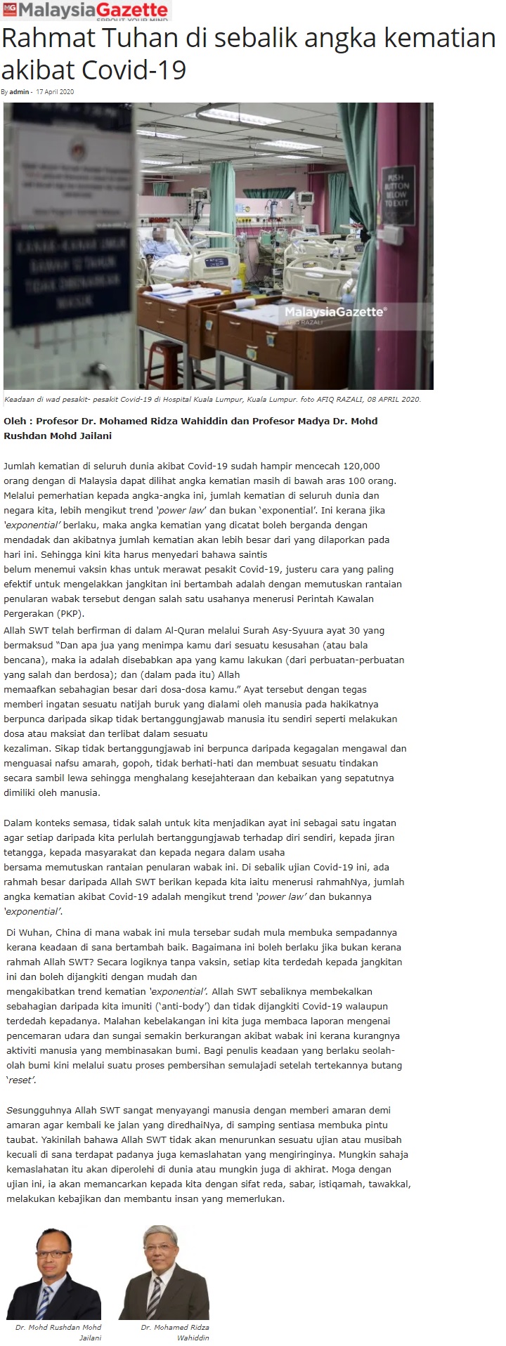 Rahmat Tuhan Disebalik Angka Kematian Akibat Covid19
