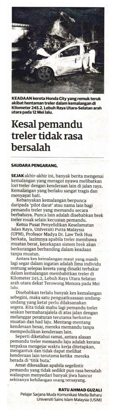 Kesal Pemandu Treler Tidak Rasa Bersalah