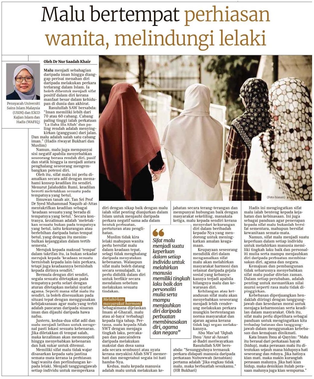 Malu bertempat perhiasan wanita, melindungi lelaki